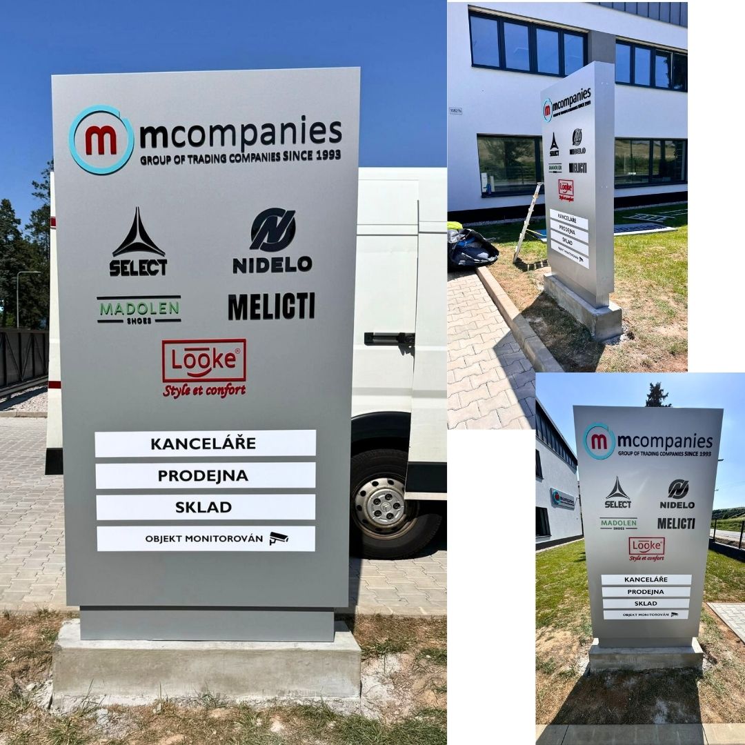 • Exteriérová navigace: Směrové cedule, informační totemy a venkovní panely s dlouhou životností. Každý venkovní prvek navrhujeme tak, aby odolal povětrnostním vlivům a zůstal čitelný i po letech expozice na slunci či v dešti.
