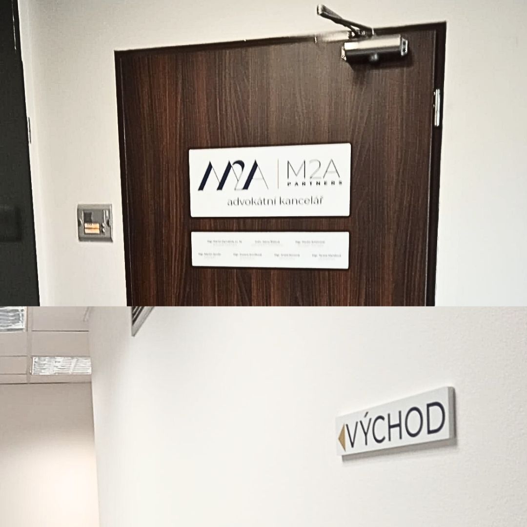• Značení budov a kanceláří: Odolné štítky na dveře, patrové tabule a jmenovky. Dokážeme vytvořit ucelené systémy, které jasně identifikují nájemce kancelářských budov nebo provází návštěvníky rozsáhlými prostory, a to s důrazem na čitelnost a reprezentativní vzhled.