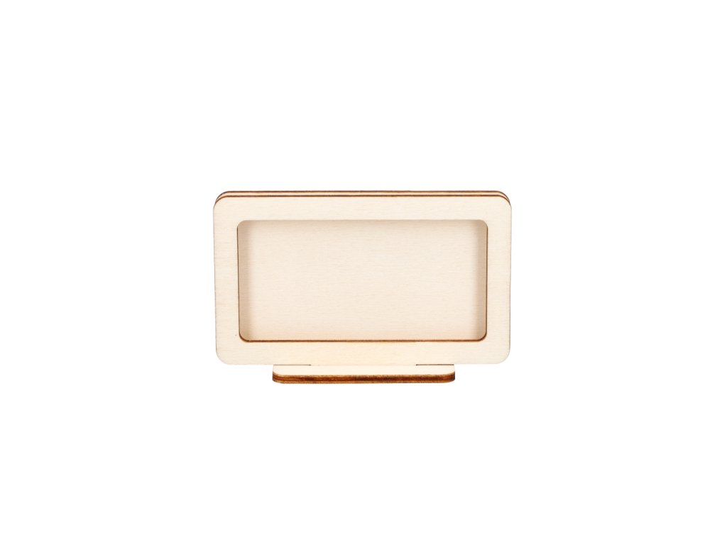 Praktický volně stojící držák z překližky pro elegantní umístění vizitek, označení pokrmů nebo cenovek. Rozměr stojánku je 60 × 97 × 30 mm (V × Š × H) a drážka o šířce 3 mm je ideální pro standardní papírové karty o velikosti 90 × 50 mm.